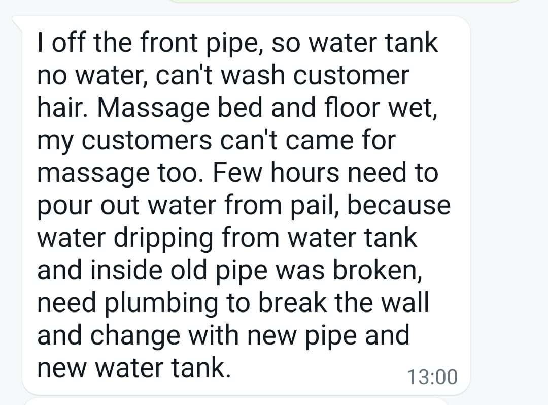 👇Her information and appeal to any who would help as she used the space to work. Water leaks despite her attempts to fix bit by bit the leaks.
