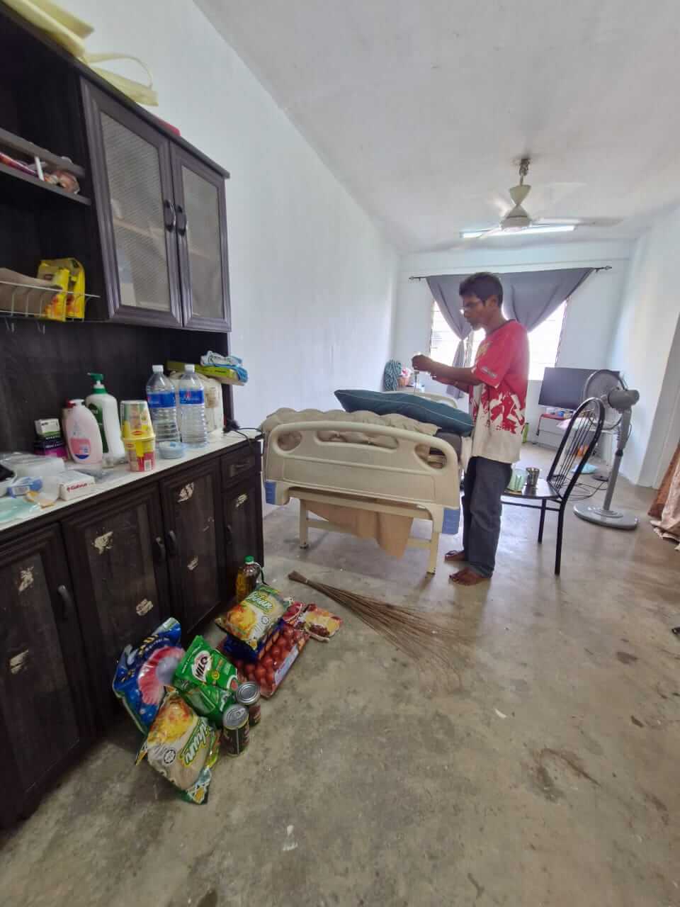 👇 2) Thanaletchumy, stroke patient and bed ridden, taken care by her son.