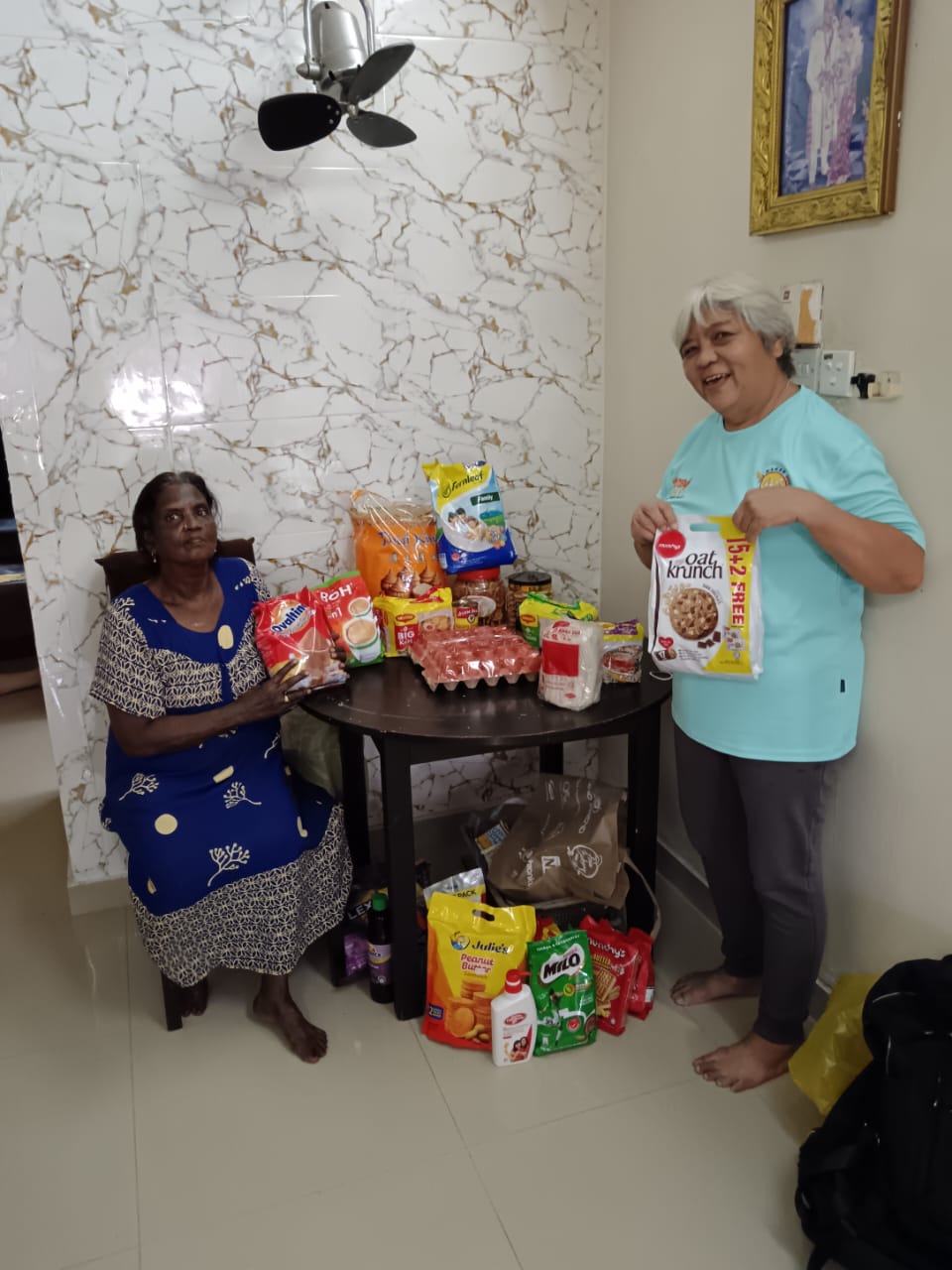 14/10/25 visit Rathi. This is Sharwin her eldest son with the provisions n Deepavali cookies n other sponsored items. Rathi took her younger son suspect dengue to hospital.