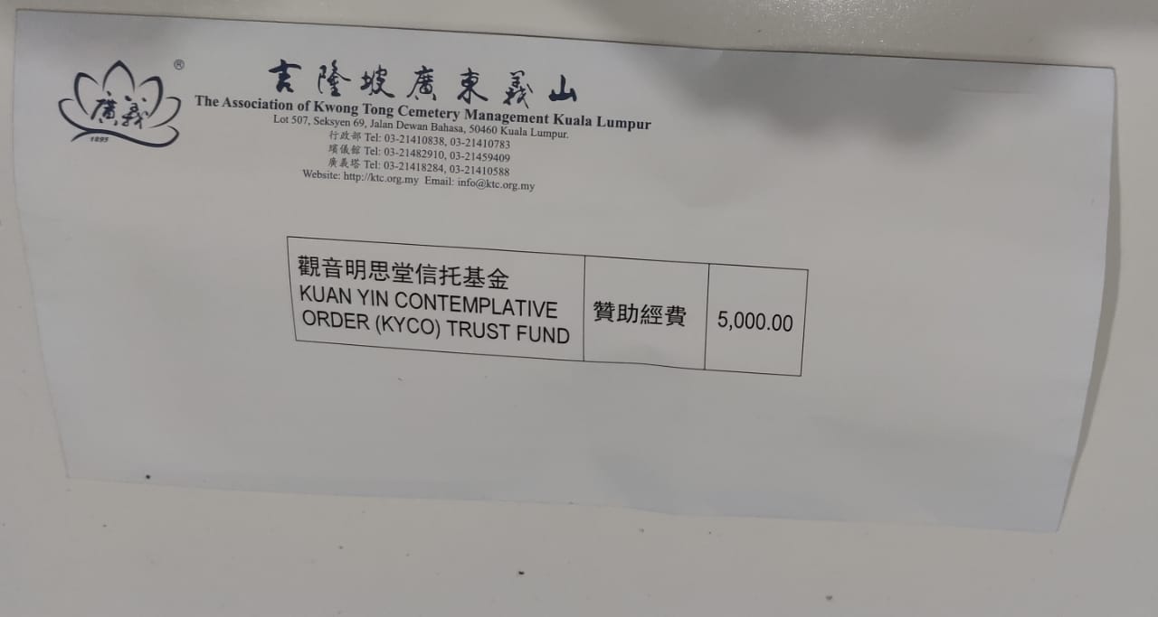 KYCO CSP Education Assistance & Mentoring Program got a nice boost of Rm 5,000 donation from The Association of Kwong Tong Cemetery Management KL ( KTC ) today.