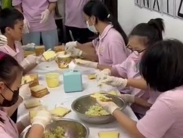 Junior Students made sandwiches for those waiting on the streets