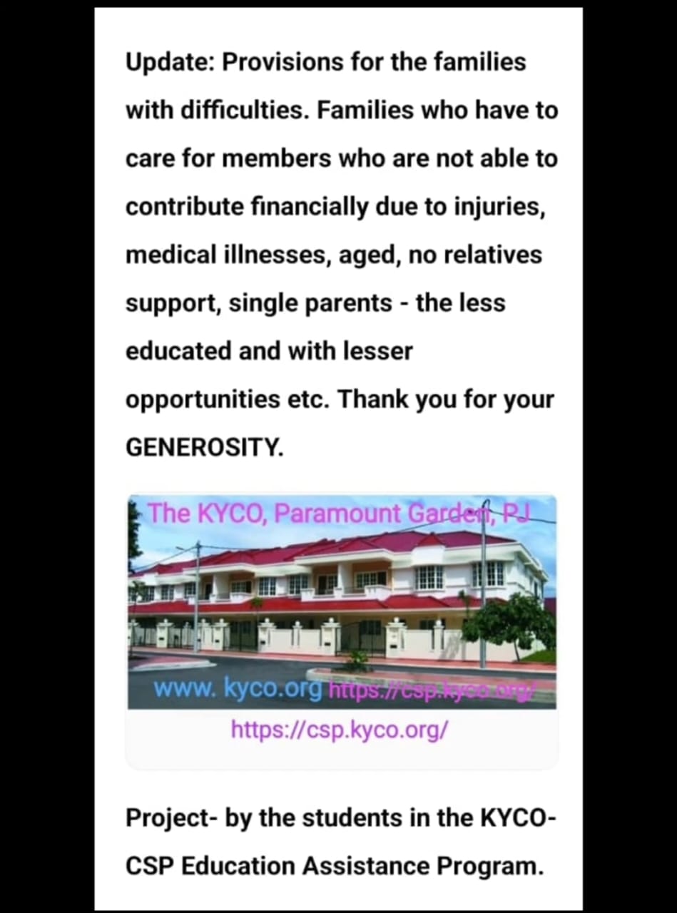 "We are indeed grateful and would like to thank the students who are with our Education Assistance Program for volunteering to take charge in the preparation of the provisions for collection by the less fortunate families. Thank you for the teamwork."