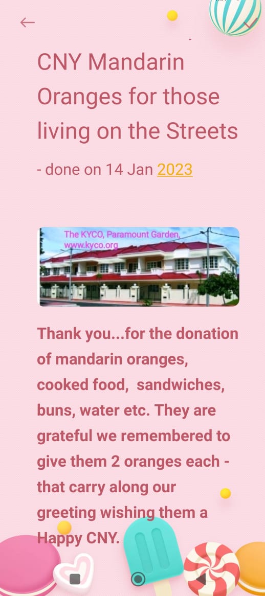 The left over oranges benefited those less well off, staying at the low cost flats.