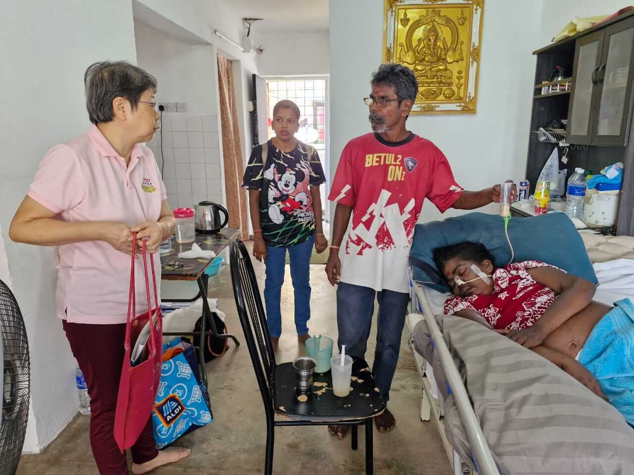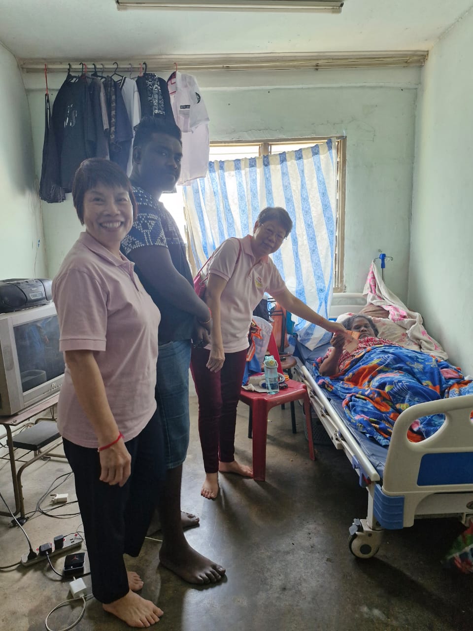 👇 2) Thanaletchumy, stroke patient and bed ridden, taken care by her son.