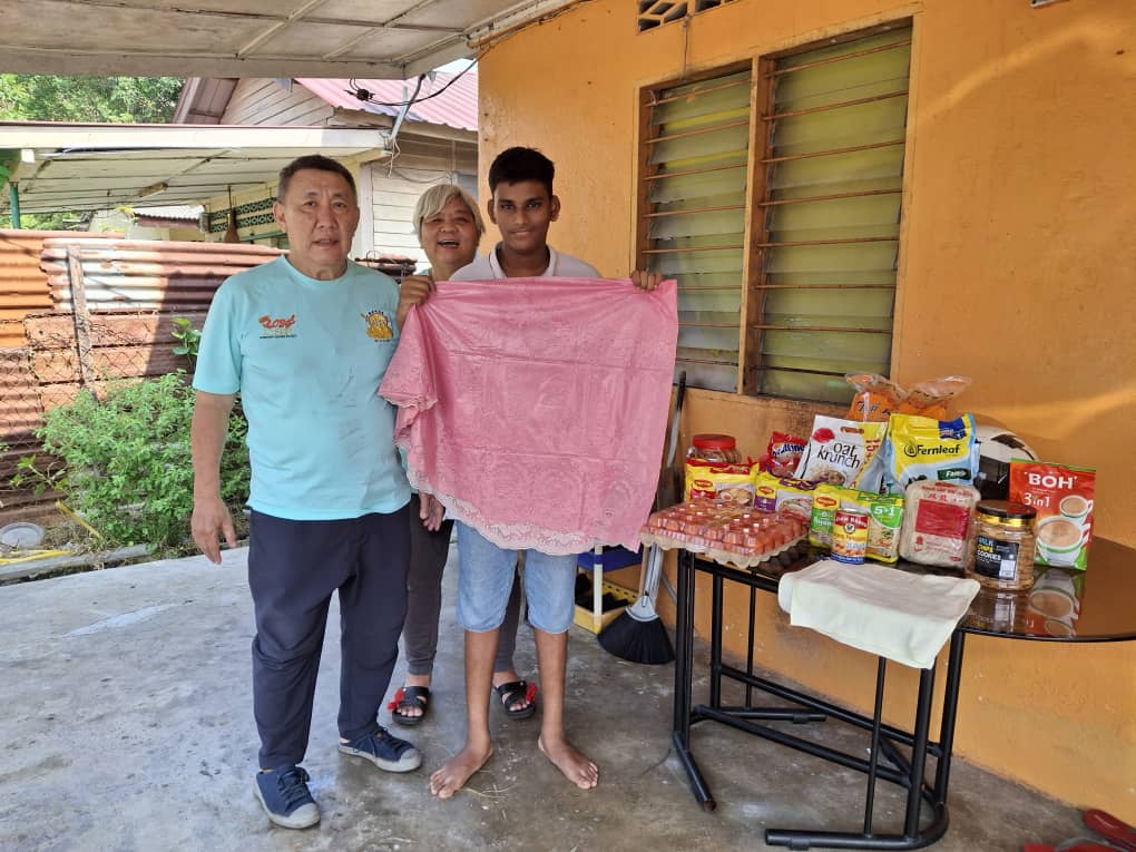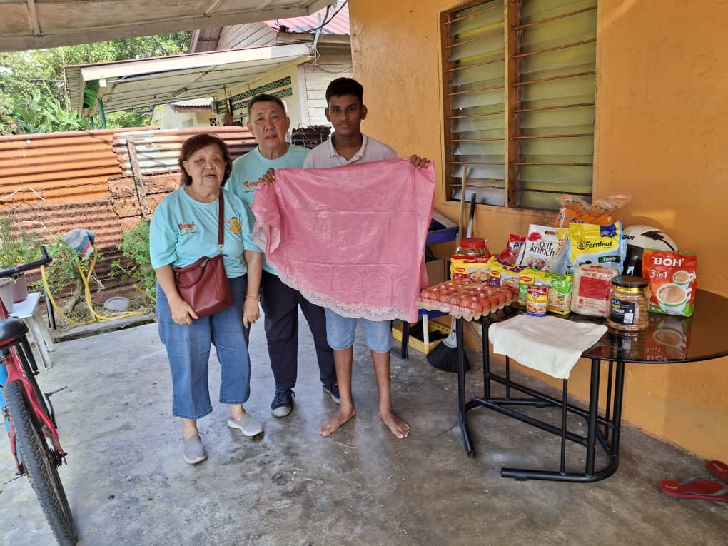 14/10/25 visit Rathi. This is Sharwin her eldest son with the provisions n Deepavali cookies n other sponsored items. Rathi took her younger son suspect dengue to hospital.